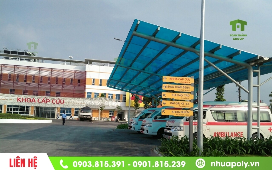 Mái che bằng tấm Polycarbonate nhà để xe cứu thương của bệnh viện