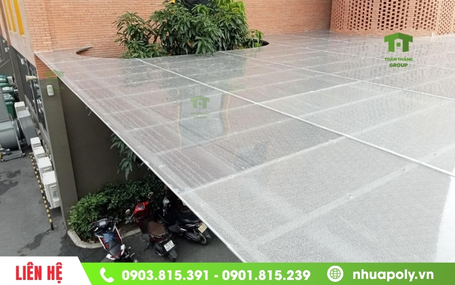 Mái che polycarbonate mái bằng trong suốt – giải pháp lấy sáng hiệu quả cho khu vực để xe